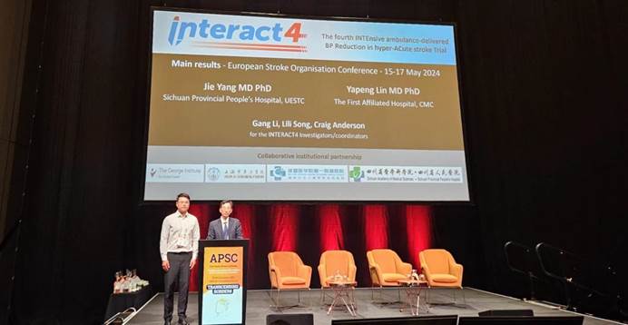 成都医学院研究生导师杨杰教授主会场做大会报告,内容为其发表在NEJM的“Intensive Ambulance-Delivered Blood-Pressure Reduction in Hyperacute Stroke”,即INTERACT4。杨杰教授带领同为第一作者的成都医学院2020届省级优秀毕业研究生、成都医学院第一届研究生会主席林亚鹏,向各个参会国家的研究者介绍了研究结果,该研究第一次提供了脑出血急性期强化降压可以改善脑出血功能预后的随机对照临床研究证据,得到会议代表的热议和盛赞。林亚鹏在会场报告,题为“Precise Antiplatelet THerapy guided by platelet aggregation function in ischemic STROKR”,即PATH-STROKE。内容包括即将完成的血小板聚集功能指导阿司匹林抗血小板治疗和即将开始的血小板聚集功能指导氯吡格雷抗血小板治疗,该研究填补了国际该领域的空白,得到与会代表的一致好评,期待相关研究结果早日发布。