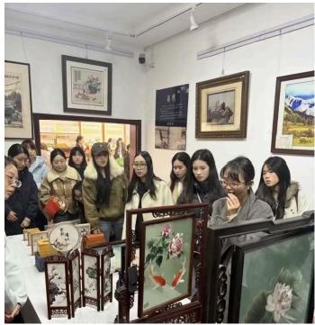 精彩战旗馆集中展示了蜀绣、唐昌布鞋等特色手工艺品和农产品,呈现出战旗村产业兴旺的繁荣景象。这些特色产业不仅带动了村民增收致富,更成为乡村振兴的重要支撑,让学员们领悟到:基层党组织带领群众发展,必须因地制宜,务实创新,才能实现党的建设与经济发展的同频共振。乡村十八坊汇聚了30余家手工作坊和多项非遗技艺,以“前店后坊”模式打造出集传承、生产、体验于一体的特色文化区域。学员们近距离感受非遗魅力,体会传统文化在党建引领下焕发的新活力,也为校园文化建设提供了有益借鉴。