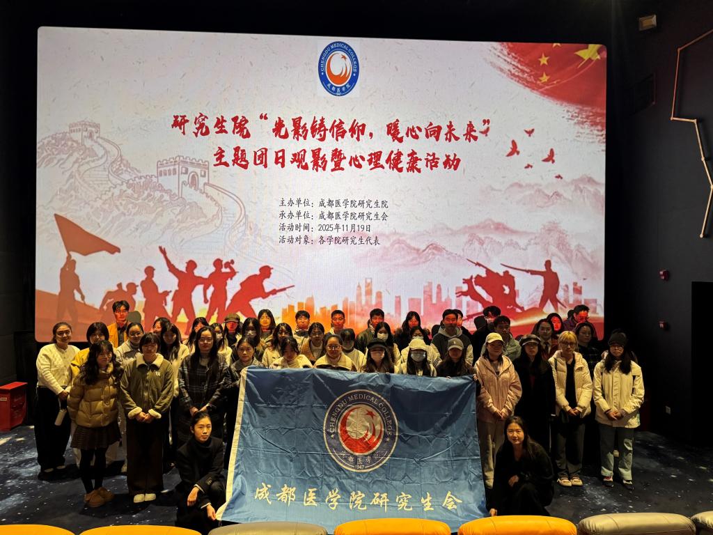 为全面提升研究生思想引领与心理育人的实效性,进一步筑牢研究生成长发展的思想根基,研究生院于11月19日在新都苏宁影城成功举办“光影铸信仰,暖心向未来”主题团日观影暨心理健康教育活动。本次活动创新融合心理教育与爱国主义教育,为来自各学院的同学们带来了一场深刻而温暖的心灵之旅。